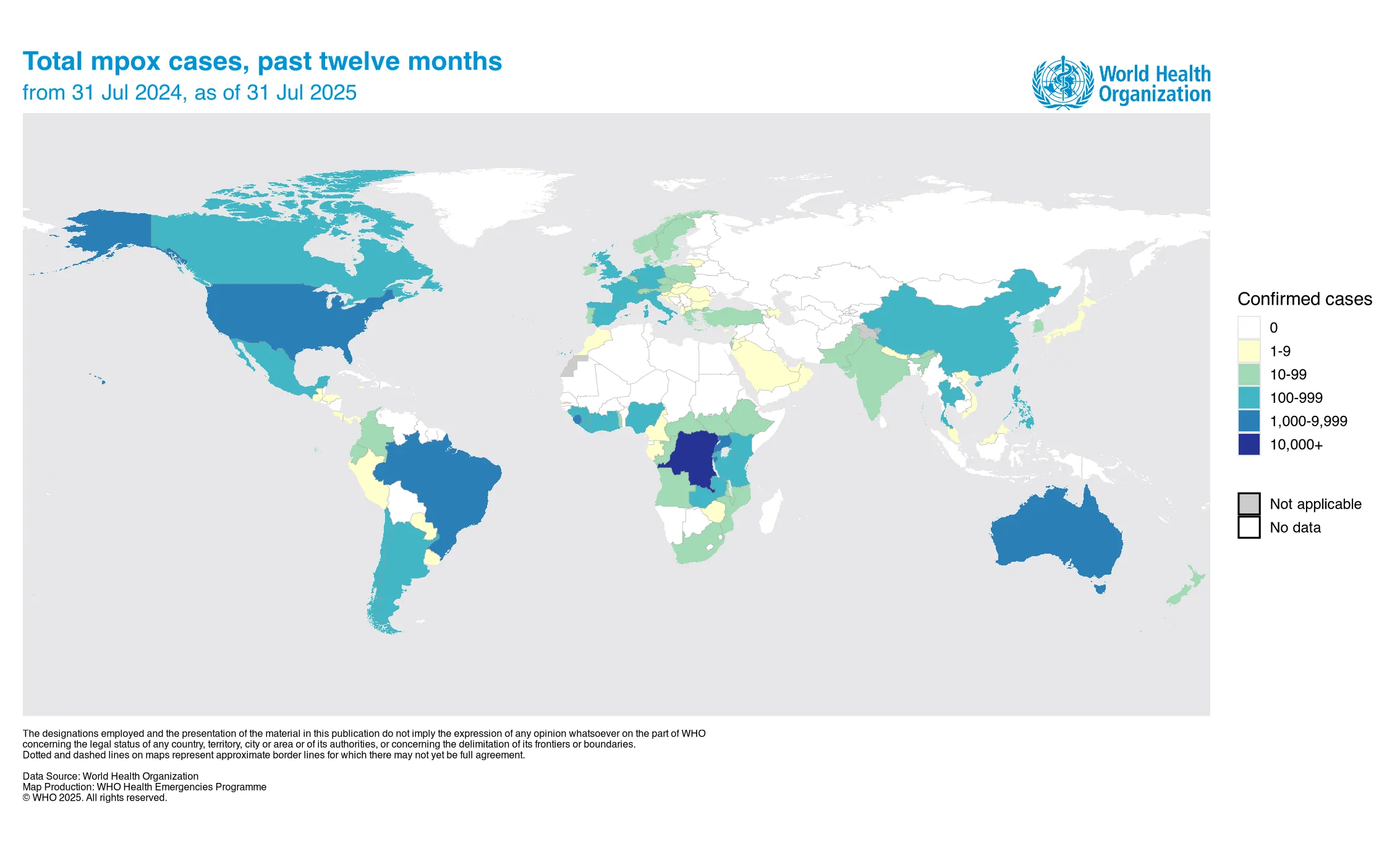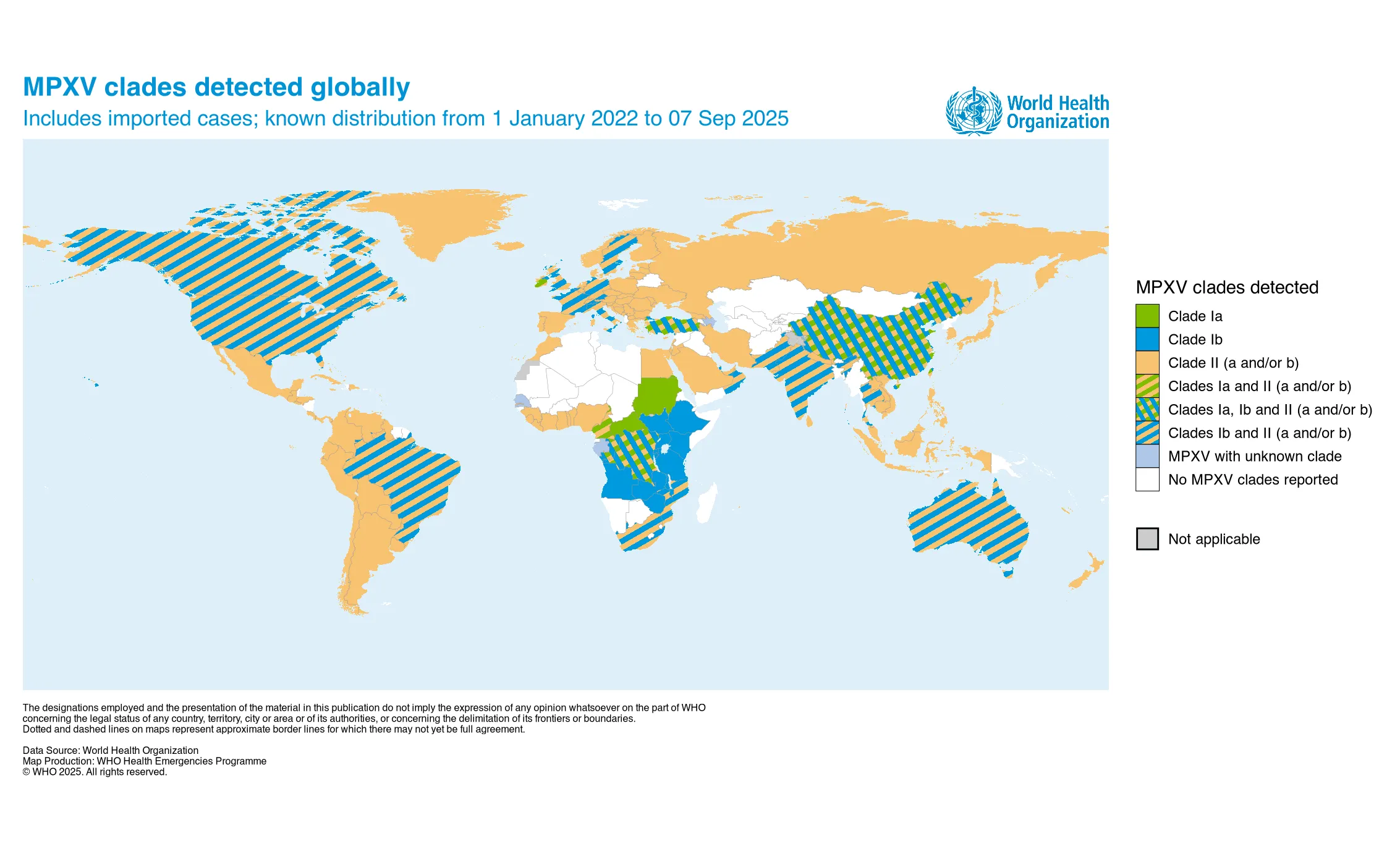 2022年5月以降、従前のエムポックス流行国への海外渡航歴のないエムポックス患者が世界各地で報告されました。その後、世界全体の症例の報告数は減少しましたが、2023年3月以降東アジア、東南アジアなどからの報告が増加しています。
