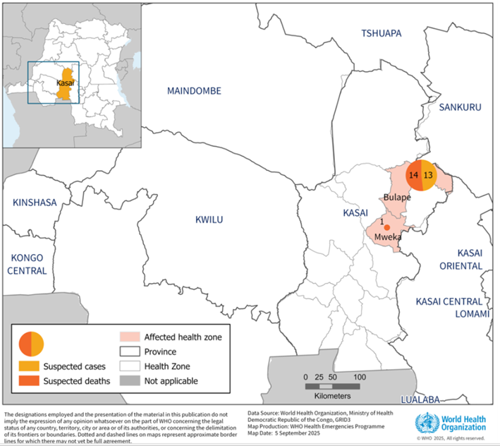 Citable reference: World Health Organization [5 September 2025]. Disease Outbreak News; Ebola virus disease - Democratic Republic of the Congo. Available at: